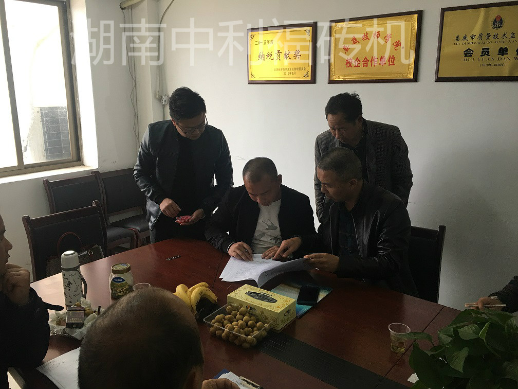 邵陽武岡的唐總選擇在星期天這個(gè)陽光明媚的日子來中利福磚機(jī)廠參觀機(jī)器設(shè)備,并與銷售人員深入的交流,經(jīng)過中利福銷售人員的梳理,一起確定了未來水泥磚機(jī)廠建廠思路,最后恭喜邵陽唐總與鄧總在湖南中利福購入一整套十型機(jī)環(huán)保磚生產(chǎn)線,唐總經(jīng)過全國各地磚機(jī)廠實(shí)地考察后,深思熟慮以后最終選擇了性價(jià)比最高的中利福磚機(jī),中利福承諾為每一位客戶上門建廠。